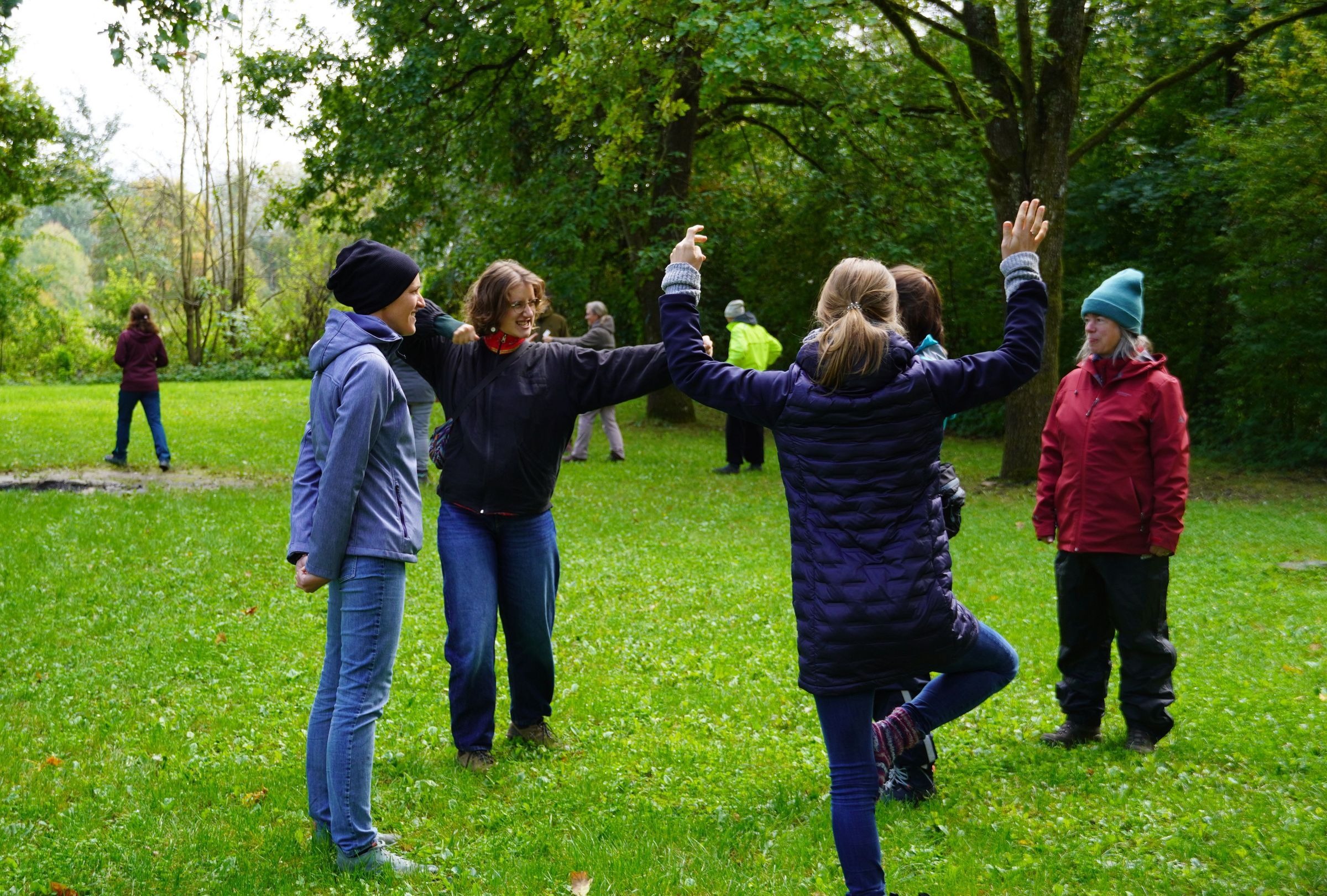Die erfahrene Wildnispädagogin Conny Schlott führte uns durch den Tag und erklärte die Ansätze der Wildnispädagogik und des Coyote Teachings. Viel Zeit verbrachten wir im Freien, um die Methoden selbst auszuprobieren. Vom stillen, intensiven Naturwahrnehmen bis hin zu wilden Spielen war alles dabei. Beim Außerirdischen-Spiel untersuchten die Teilnehmenden einzelne Naturobjekte ganz genau, und beim wilden Spiel verrücktes Eichhörnchen wurde laut gelacht.