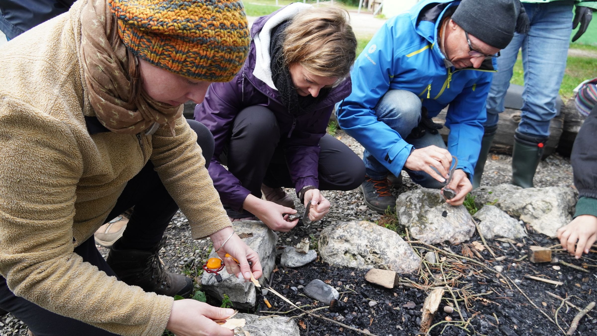 Am Ende des Tages durften die Teilnehmenden am Lagerfeuer ihre Fähigkeiten im Feuermachen erproben. Der Funke sprang über – schnell entzündeten sich einige kleine Feuer und die Begeisterung der Teilnehmenden. Der Tag hätte hier noch lange weitergehen können.