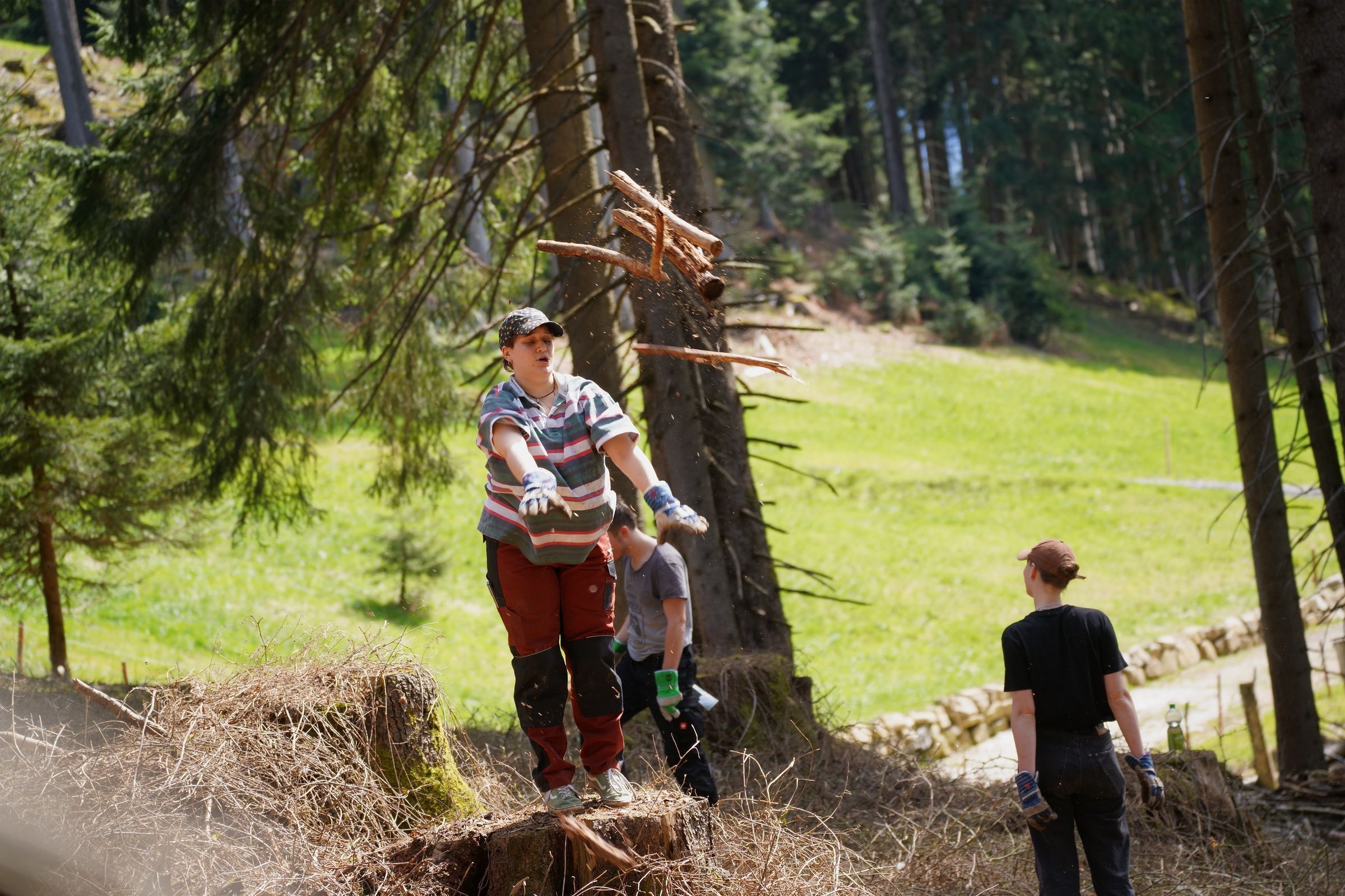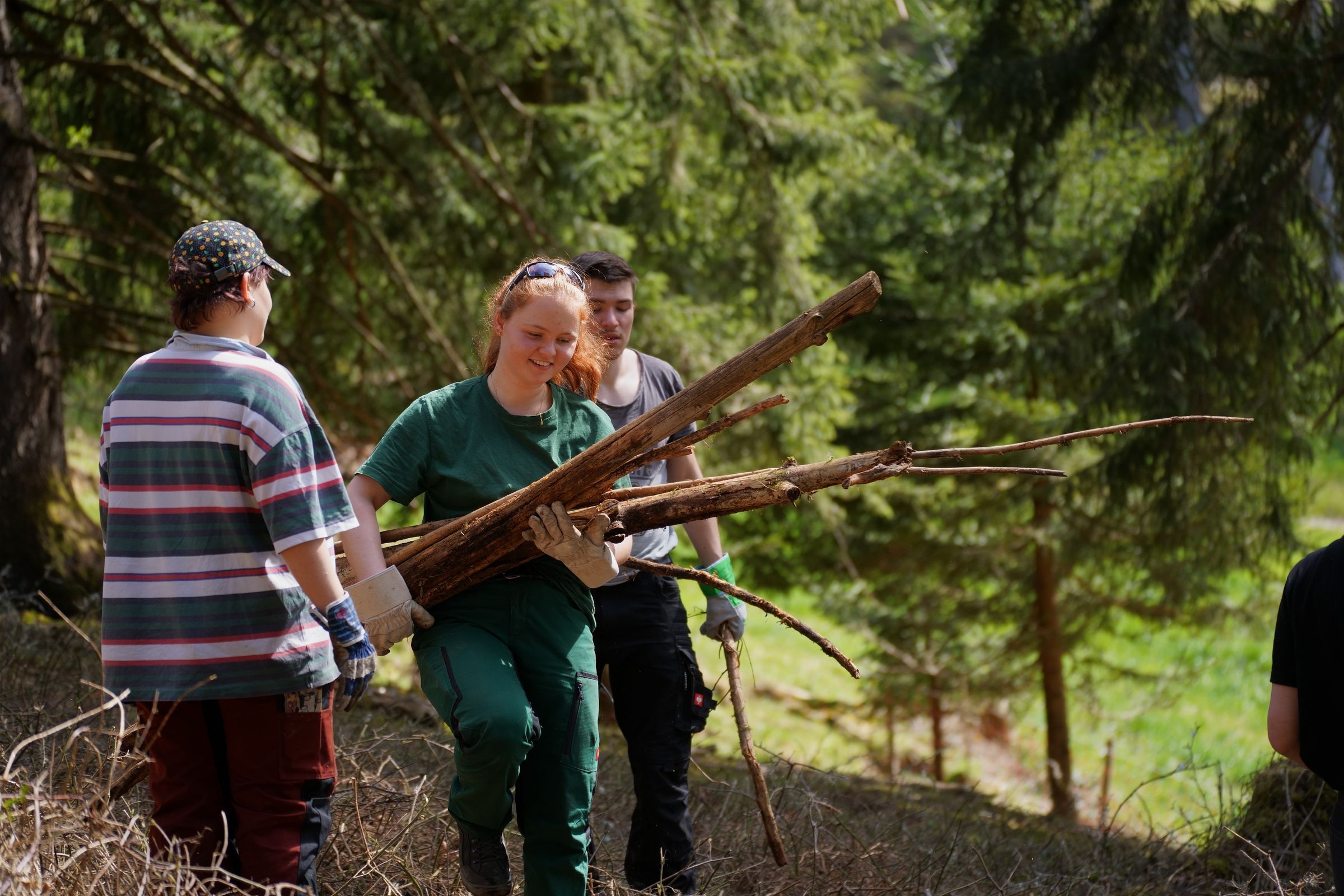 Eine weitere Gruppe baute einen bereits bestehenden, veralteten Zaun ab und errichtete an seiner Stelle einen neuen Zaun, der den neuesten Anforderungen des Herdenschutzes entspricht. Die dritte Gruppe befreite eine überwucherte und verholzte Weidefläche vom Gehölz, um sie wieder nutzbar zu machen.