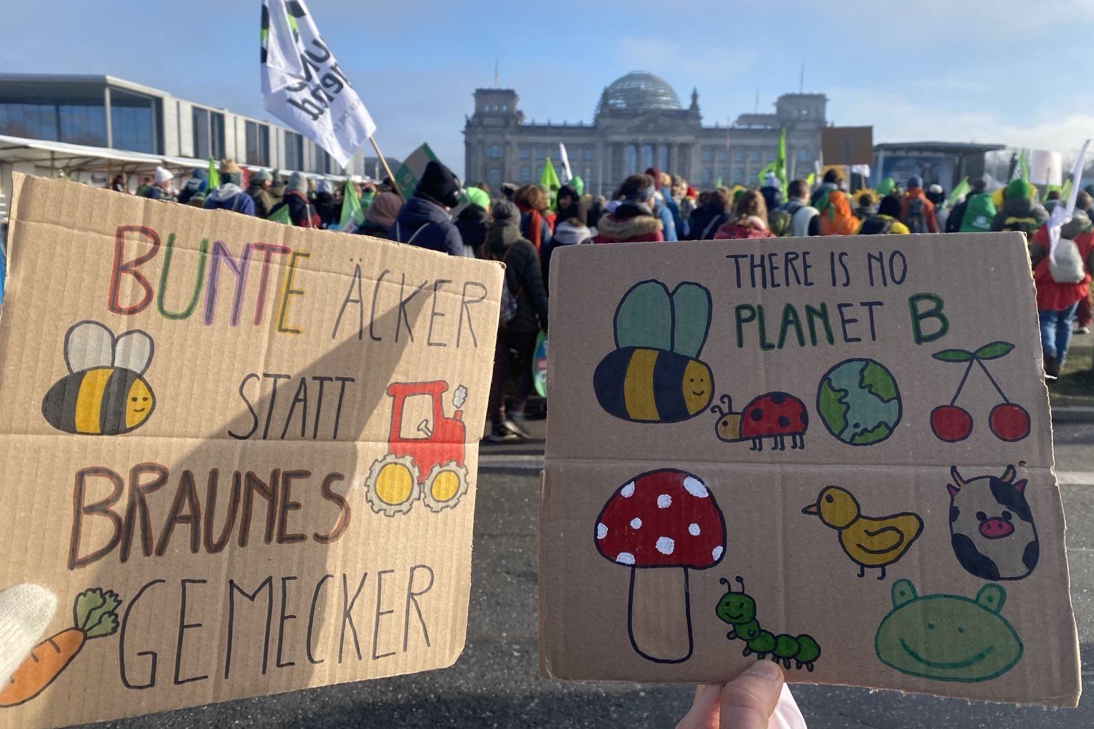 Wofür wir demonstrieren: Wir haben die Agrarindustrie satt! Ohne Bäuer*innen gibt es keine Zukunft für unsere Lebensmittel. Die Regierung und die Agrarindustrie wollen immer mehr produzieren und die Preise niedrig halten. Das führt zu mehr Massenproduktion, weniger Natur und weniger Bauernhöfe.